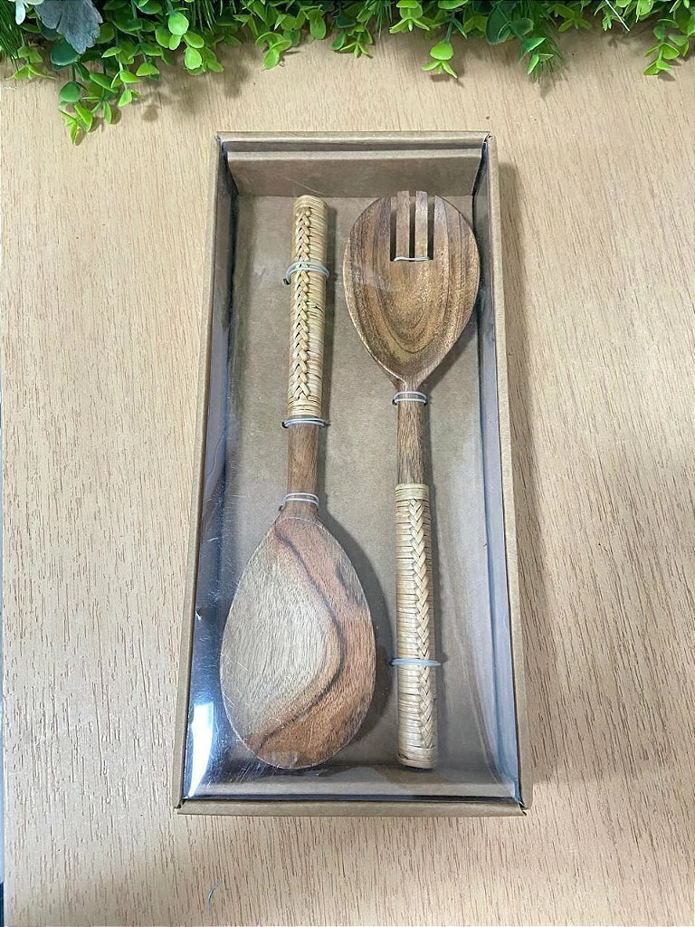 Adicione um charme rústico e elegante à sua mesa com o nosso Conjunto de 2 Talheres para Salada com Cabo de Vime. Com 29x1cm, este par de talheres é perfeito para servir suas saladas favoritas, combinando funcionalidade com um design naturalmente belo.