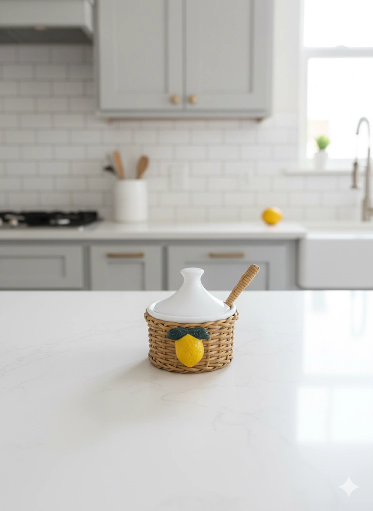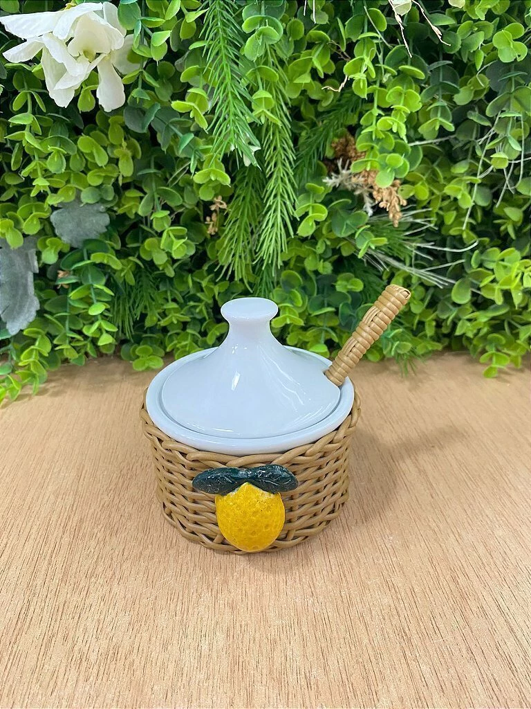 O Açucareiro Citrus Limon é a união perfeita entre funcionalidade e beleza natural. Feito em cerâmica com acabamento em vime trançado e decorado com adorável limão siciliano, ele traz um toque de frescor mediterrâneo à sua mesa. Acompanha uma charmosa colher, ideal para servir açúcar, mel ou geleias com praticidade e elegância. Um item que transforma o simples momento de adoçar em uma experiência cheia de estilo e calor acolhedor.