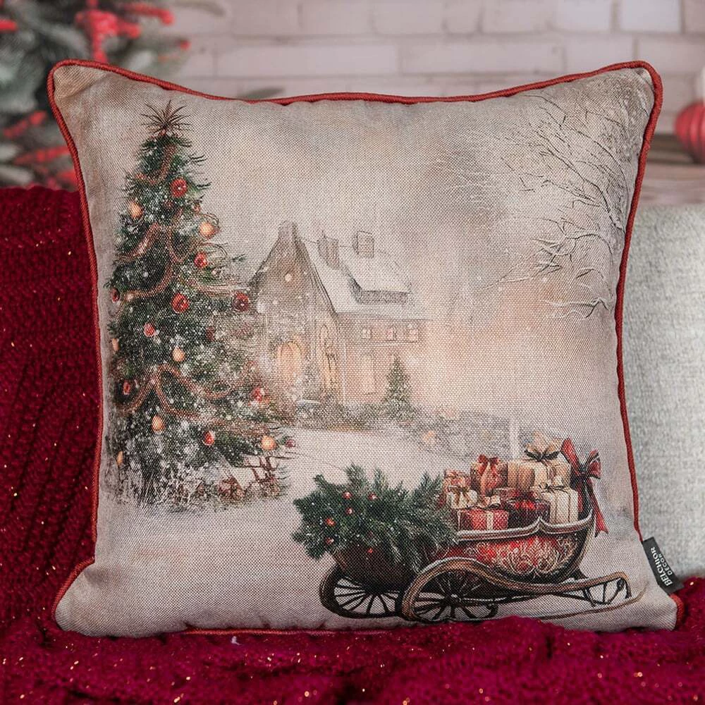 Traga o calor e o charme das tradições de Natal para sua casa com esta bela Almofada Decorativa. Sua estampa detalhada e de inspiração vintage captura uma pitoresca cena da véspera de Natal, ideal para criar um ambiente acolhedor.