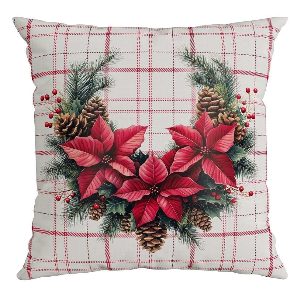 Almofada Guirlanda Poinsétia e Xadrez 43x43cm