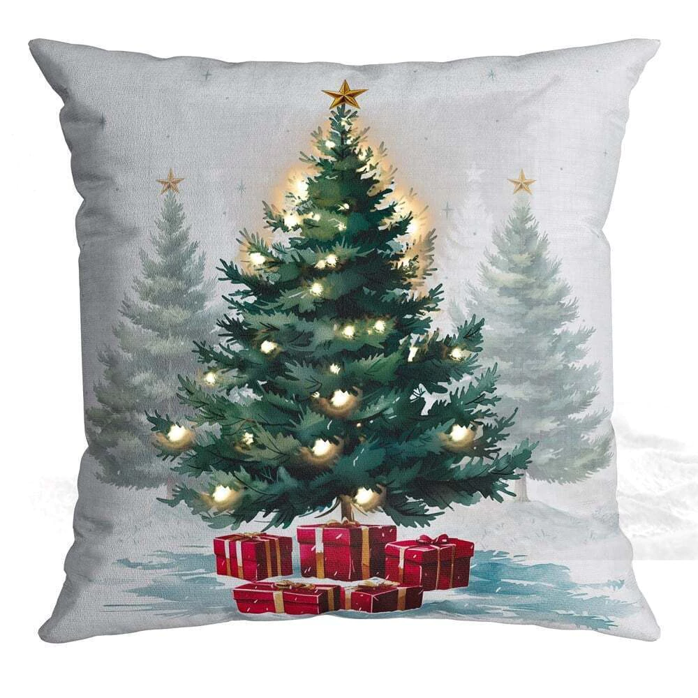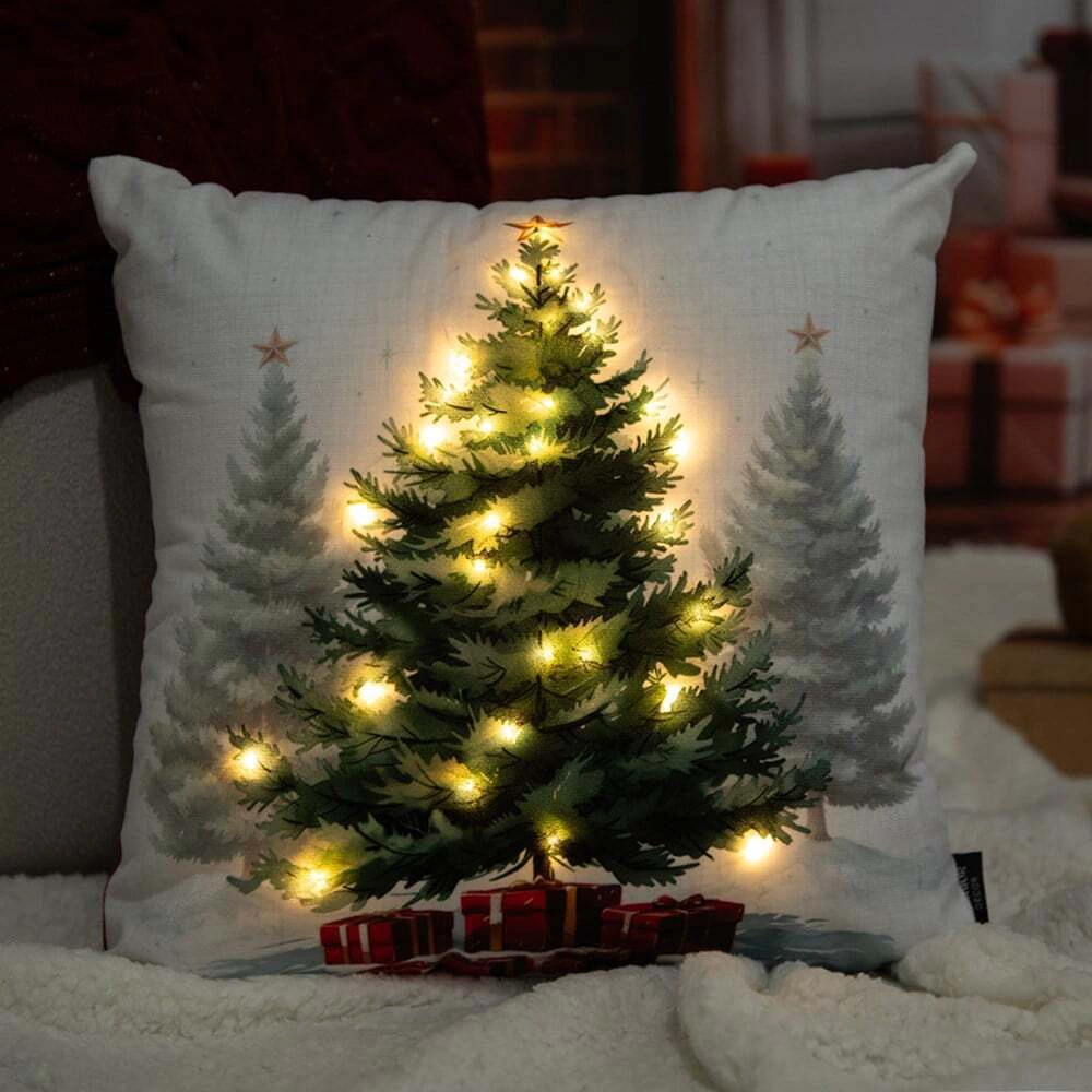 Almofada Pinheiro de Natal e Presentes C/LED 43x43cm - A Magia da Noite Iluminada