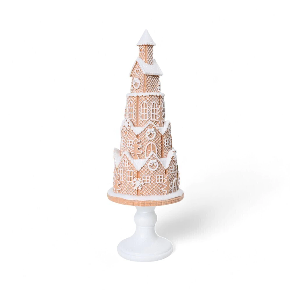 Inspirado nas tradicionais e deliciosas casas de Gingerbread (Biscoito de Gengibre), esta peça deslumbrante captura a doçura e o detalhe artesanal em um formato de torre imponente.