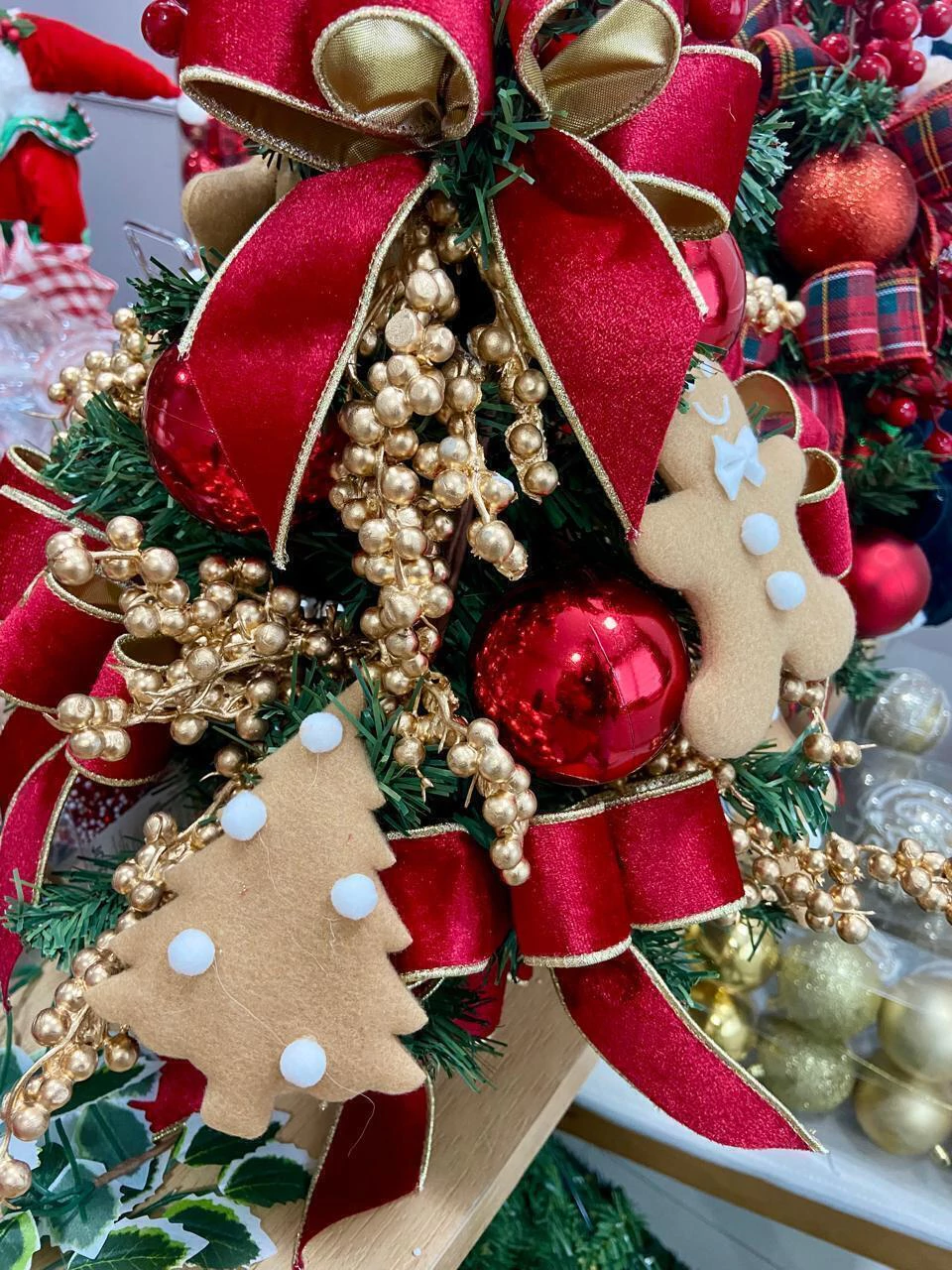 Esta é uma mini árvore de Natal de pelúcia, ideal para a decoração da sua casa.