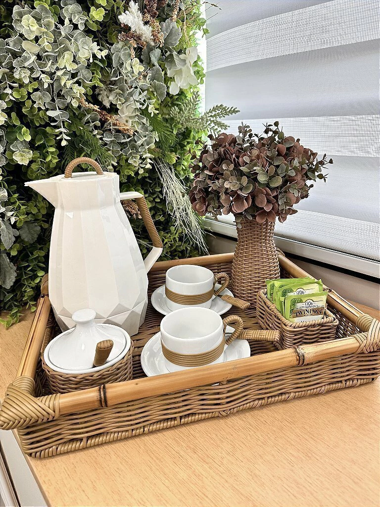 A Bandeja Bambu Balli Caramelo é a escolha ideal para quem deseja aliar elegância e rusticidade em um único item. Feita com ferro, vime e bambu natural, ela traz um design encantador que combina durabilidade e estilo. Seu acabamento em vime caramelo adiciona um toque acolhedor, tornando-a perfeita para servir, organizar ou até mesmo como peça decorativa. Com altura de 6 cm, comprimento de 41,5 cm e largura de 31 cm, ela é ideal para quem procura uma bandeja versátil e sofisticada para diversos ambientes.
