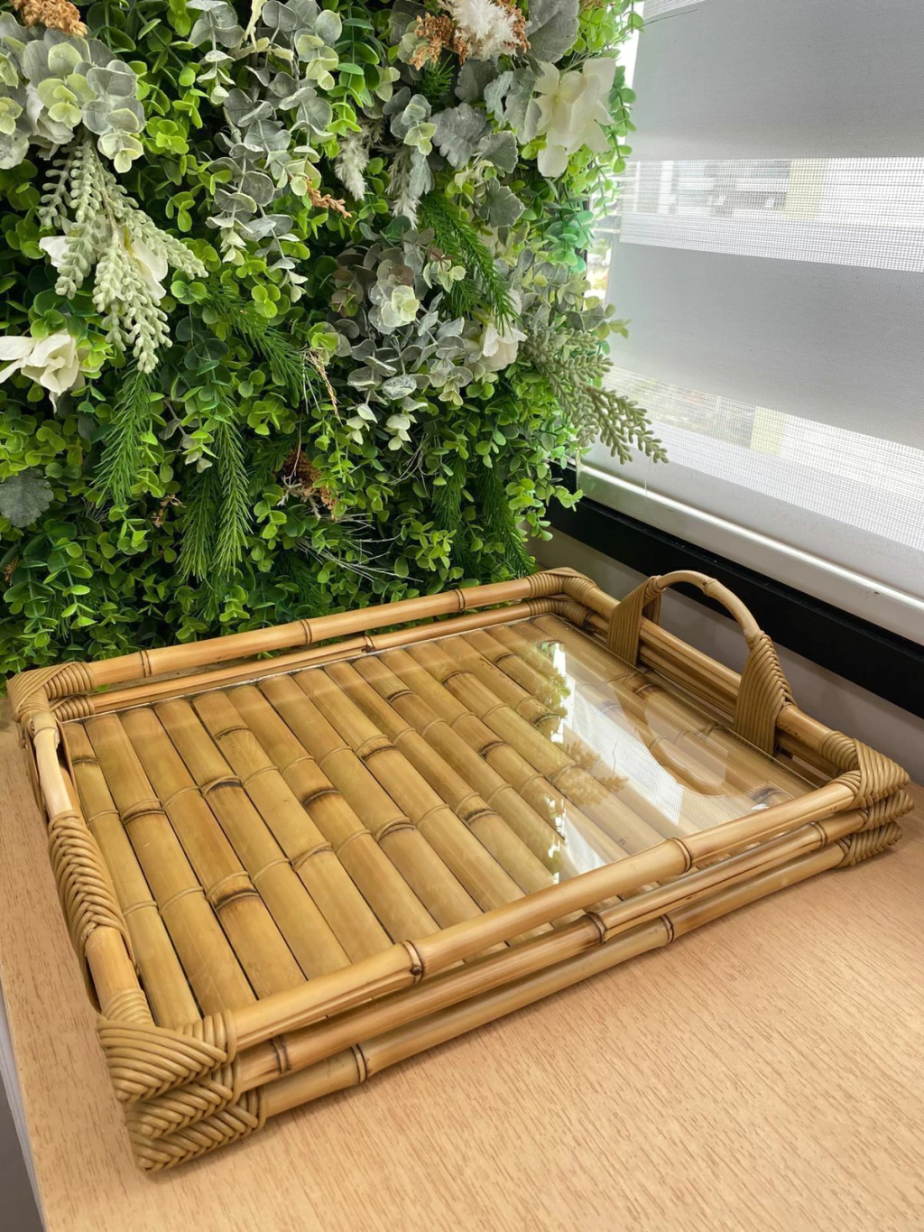 Perfeita para servir ou decorar, a Bandeja Boho Bambu Retangular combina a beleza da natureza com um design funcional.