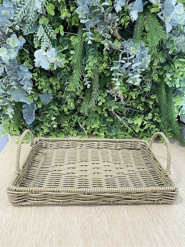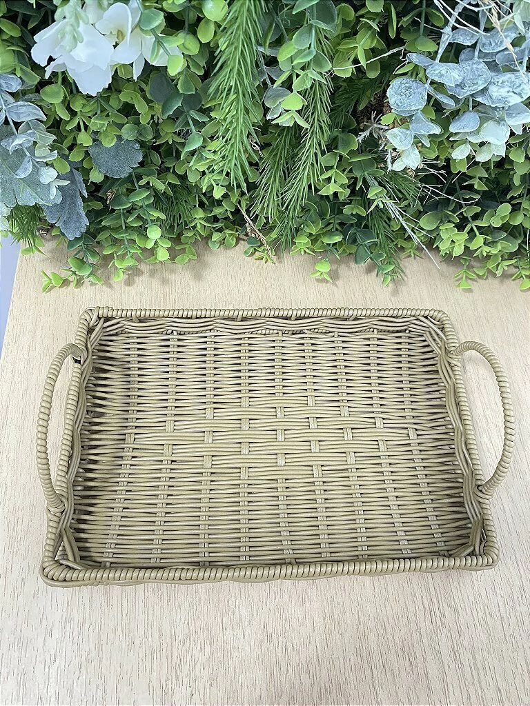 Esta charmosa bandeja em formato de losango pequeno combina a beleza natural do vime com a praticidade de alças integradas, tudo em um tom quente e convidativo de caramelo.