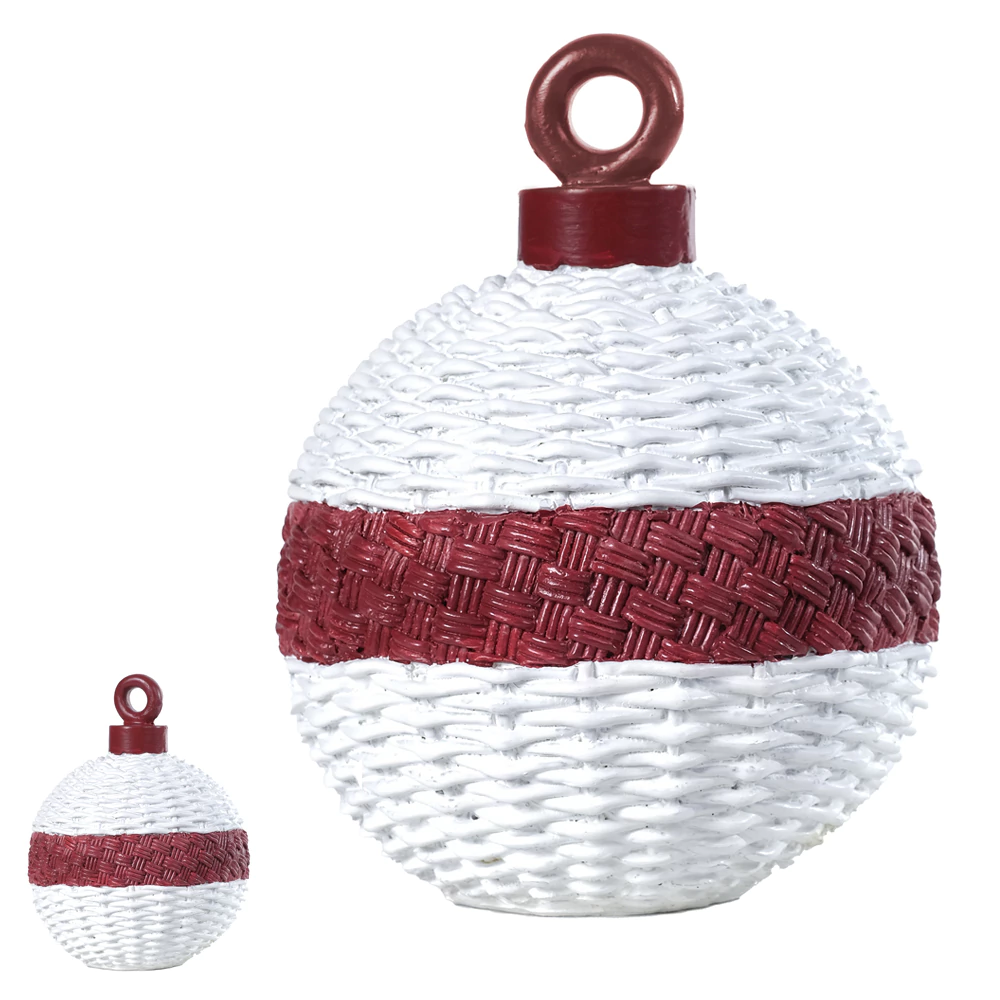 Com 18x14x14cm, esta peça decorativa é ideal para pendurar na árvore de Natal ou para enfeitar a casa. Sua textura de vime em tons de branco e vermelho adiciona um toque rústico e tradicional, combinando com diversas decorações.