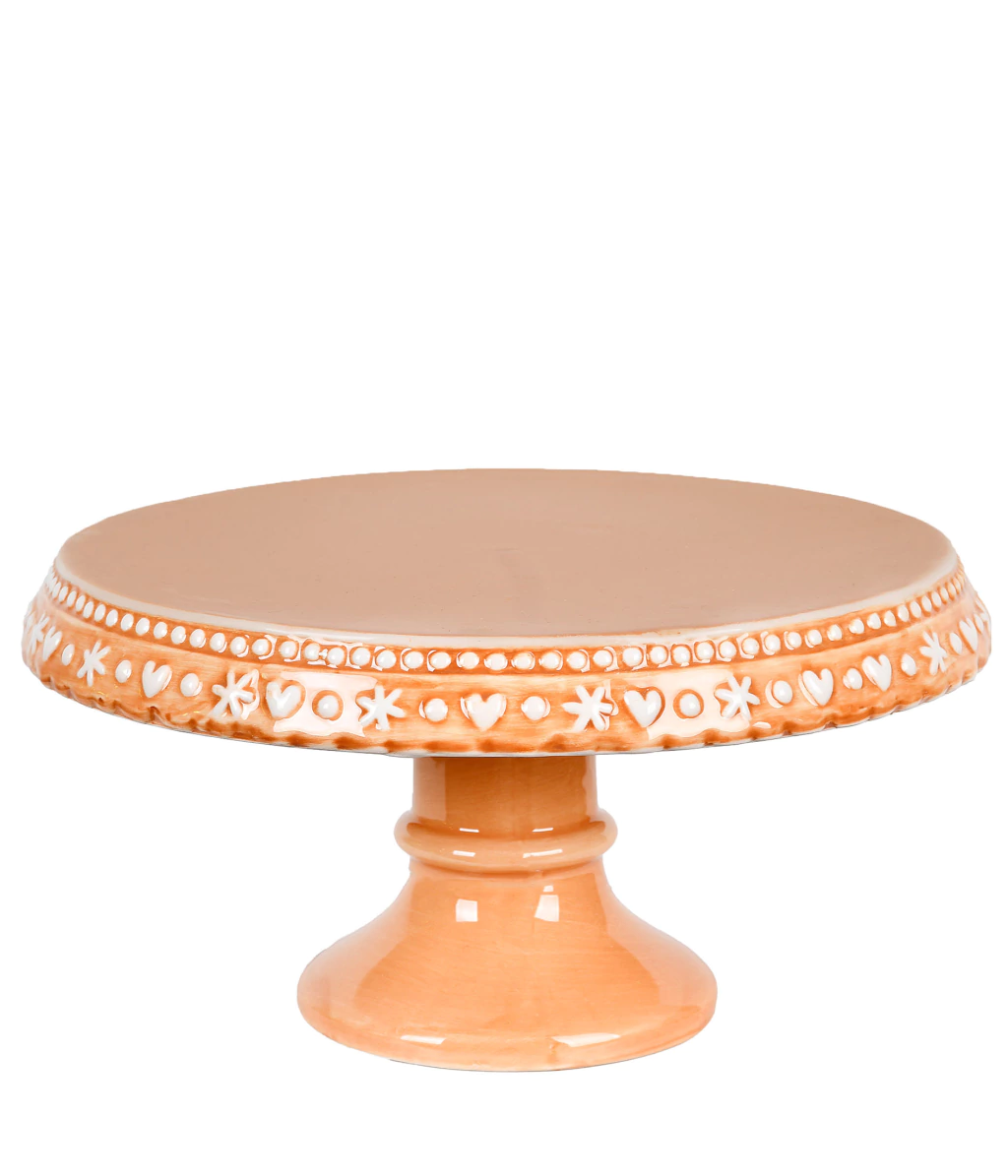 Sirva suas criações de confeitaria com um toque de romantismo rústico e aconchegante com a Boleira Corações e Estrelas em Relevo Terracota.