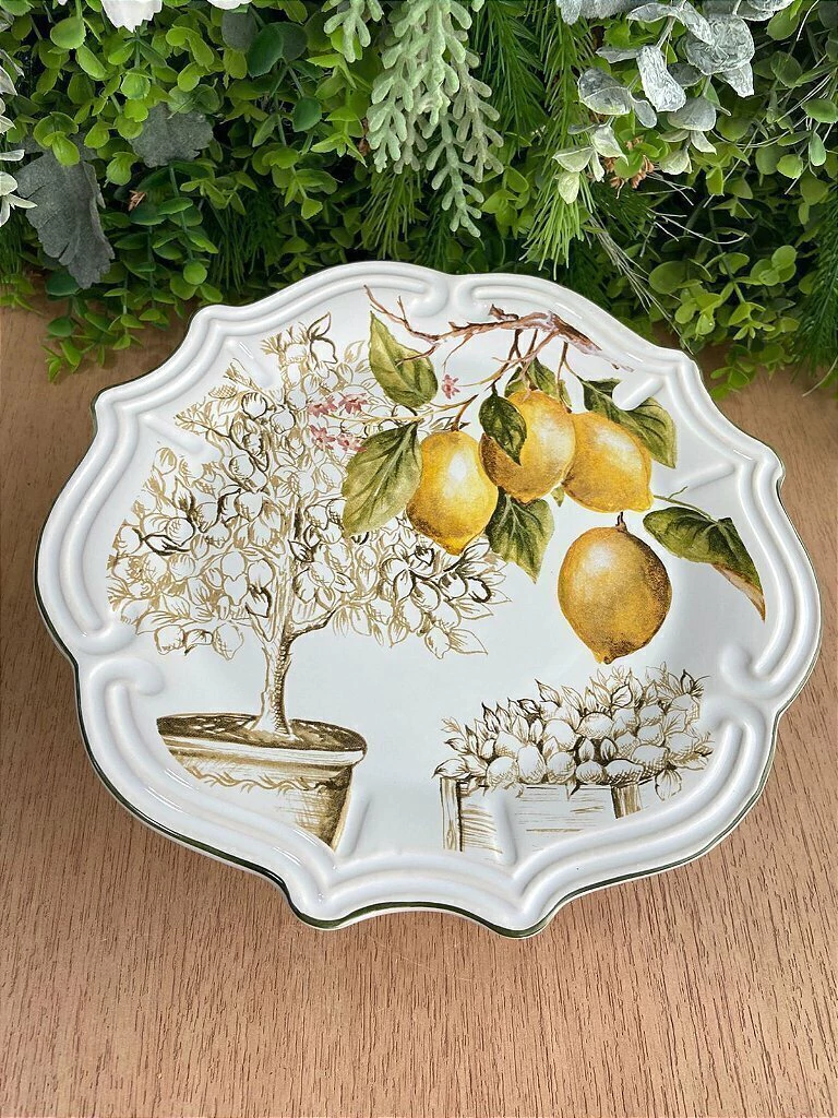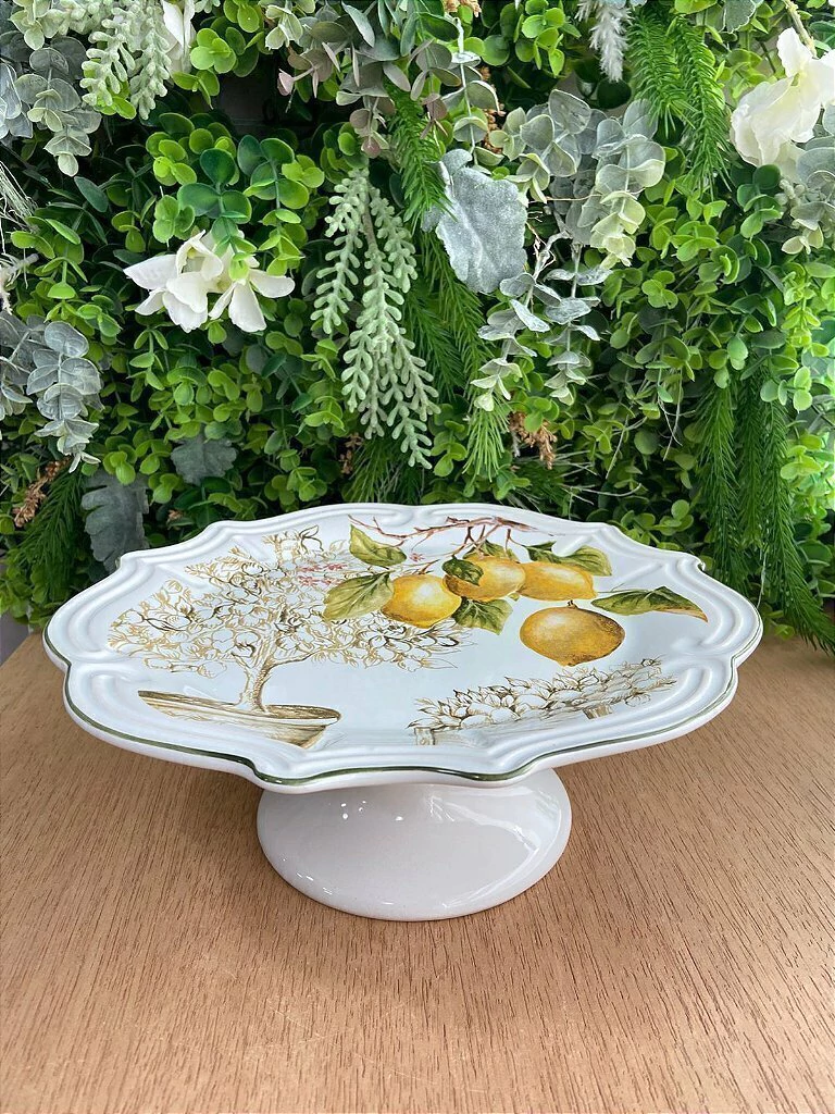 Eleve a apresentação dos seus doces a um novo patamar com a Boleira Média Limão Sicília Luxo. Esta peça deslumbrante é mais do que um simples suporte para bolos; é uma obra de arte que celebra a beleza vibrante e o charme sofisticado da região da Sicília, na Itália.