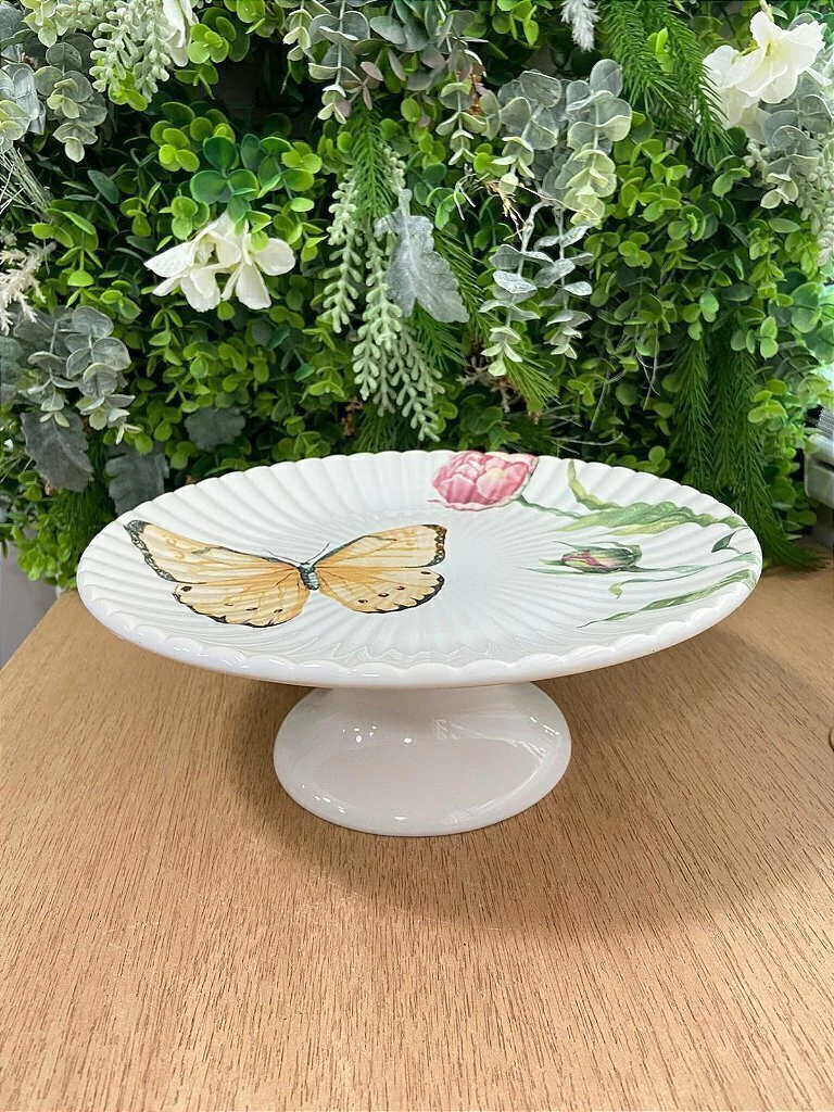 Eleve a apresentação de seus doces com a Boleira Média Voo Floral Amarelo. Perfeita para bolos, tortas e cupcakes, esta boleira encantadora transforma qualquer mesa em um espetáculo. Com delicadas ilustrações de borboletas esvoaçantes e folhagens sutis, ela adiciona um toque de fantasia e sofisticação a festas e reuniões. Fabricada com cerâmica de alta qualidade, garante estabilidade e durabilidade, enquanto seu design único celebra a beleza natural em cada detalhe.