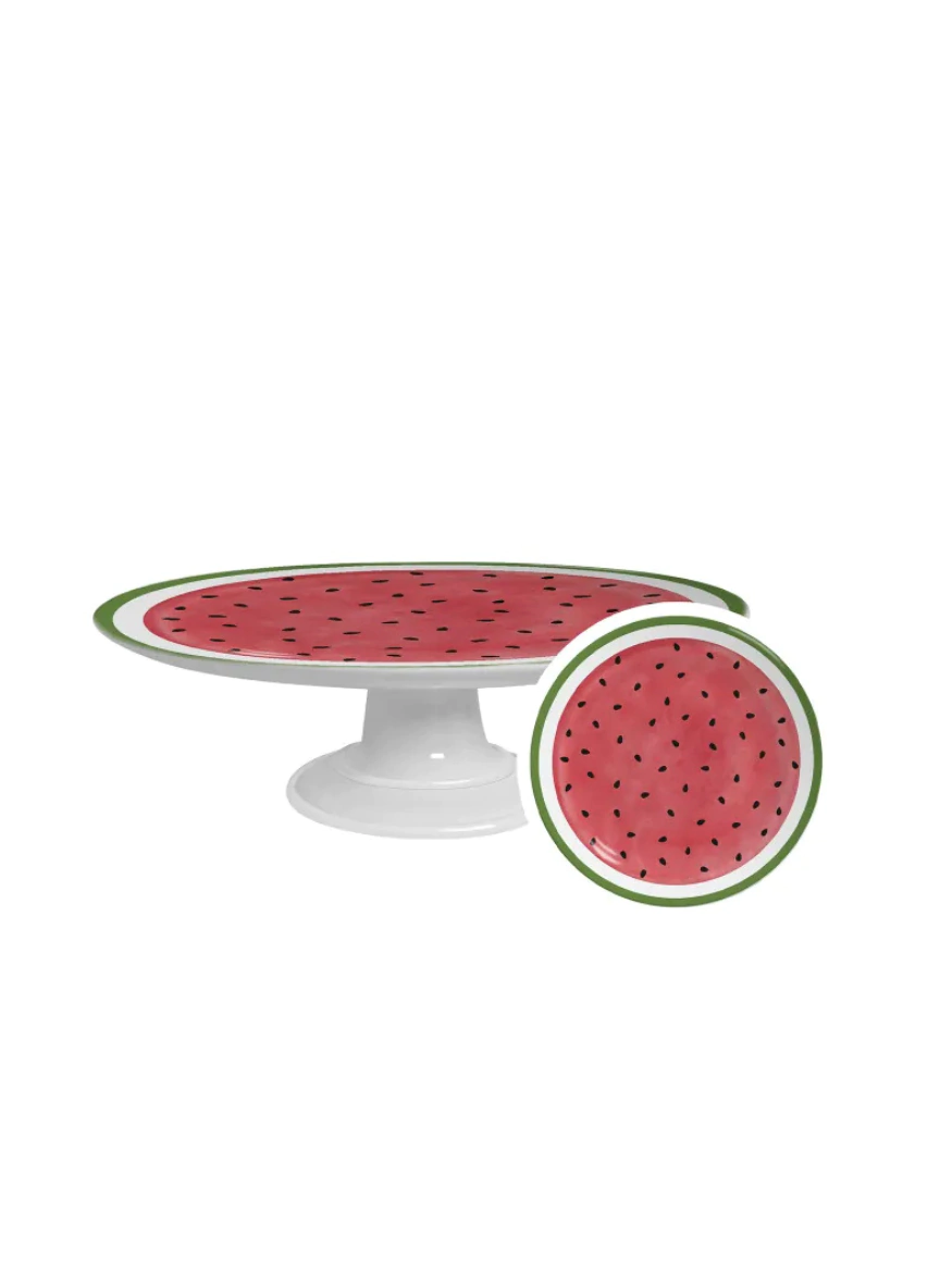 Esta peça combina um design clássico de boleira com um toque divertido e vibrante da estampa de melancia. Com um diâmetro de 34cm, ela é perfeita para exibir bolos, tortas e doces, tornando a sobremesa a estrela da festa. A base robusta e elegante garante que a sua criação seja apresentada com segurança e estilo, ideal para ocasiões especiais ou para alegrar o dia a dia.