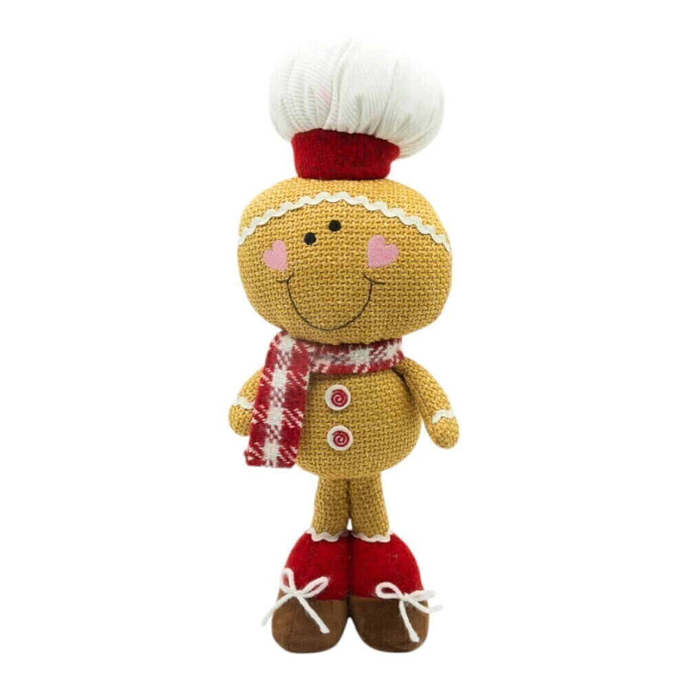 Traga o encanto natalino para sua decoração com o Boneco Ginger Cachecol Xadrez. Confeccionado em tecido com acabamento em juta, ele possui um rosto simpático com bochechas rosadas em formato de coração, sorriso acolhedor e detalhes decorativos que remetem ao clássico biscoito de gengibre.