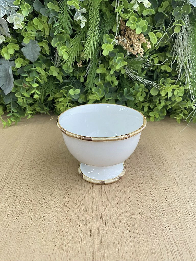 Uma peça ideal para acrescentar cor à mesa, com elegância e elementos tropicais. O bowl é produzido em cerâmica com belos detalhes em bambu nas bordas, perfeito para o uso diário. Por sua praticidade, resistência e facilidade no momento da limpeza é um item essencial para qualquer cozinha, podendo ser utilizado para preparar receitas, armazenar alimentos ou servir refeições, como sopas e caldos, e também molhos. Peça que tornará sua mesa de jantar ainda mais completa e linda! Altura: 8cm Diâmetro: 12cm