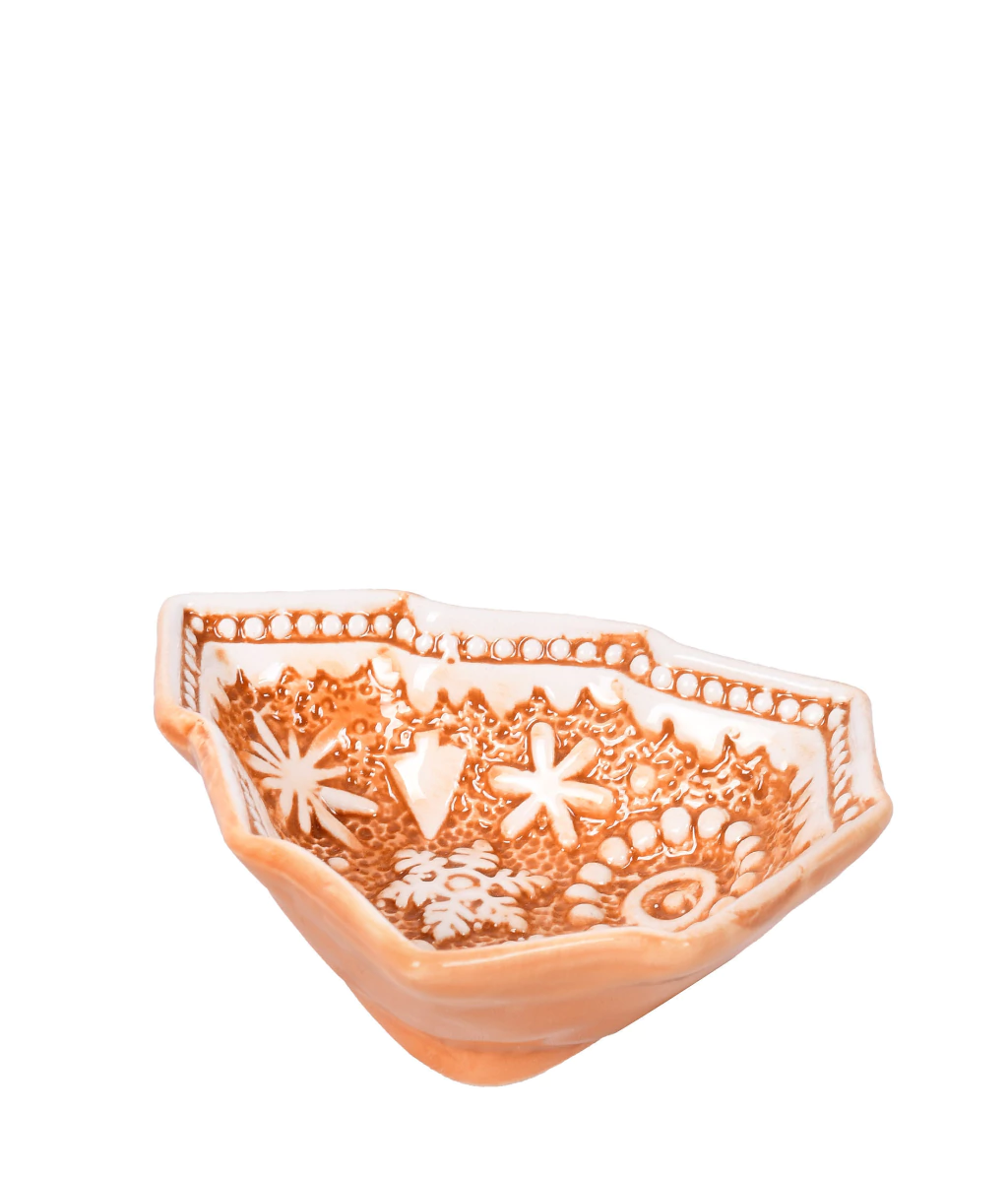 Adicione um toque de charme rústico e a delicadeza dos biscoitos de gengibre (gingerbread) à sua mesa de doces ou petiscos com o Bowl P (Pequeno) Pinheiro com Floquinhos de Neve em Relevo Terracota.