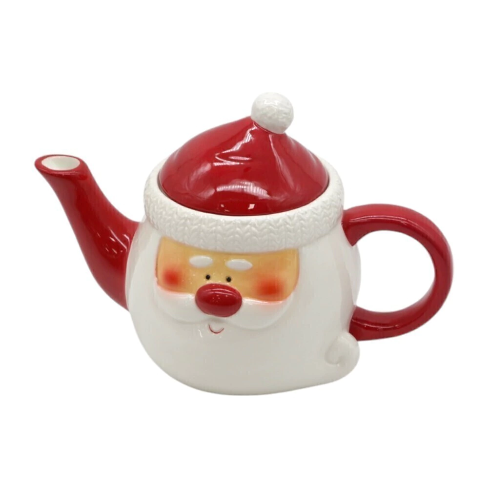 Com 15cm de altura, ele é feito de cerâmica de alta qualidade, com um design divertido que imita o rosto do Papai Noel. O bule é na cor branca, com barba, bigode e sobrancelhas em alto relevo, enquanto o gorro e a alça são na cor vermelha, e a alça e o bico na cor vermelha. A peça é uma adição divertida para servir chás e cafés, ideal para a época de Natal e Ano Novo.