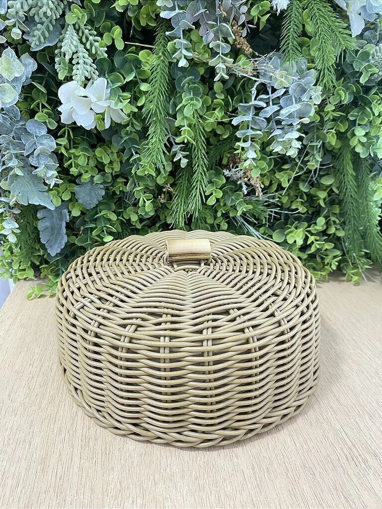 Este elegante cobre bolo combina a beleza natural do bambu e do vime com um toque de sofisticação em tom caramelo, tornando-se a peça perfeita para proteger e apresentar seus bolos e sobremesas com charme e estilo.