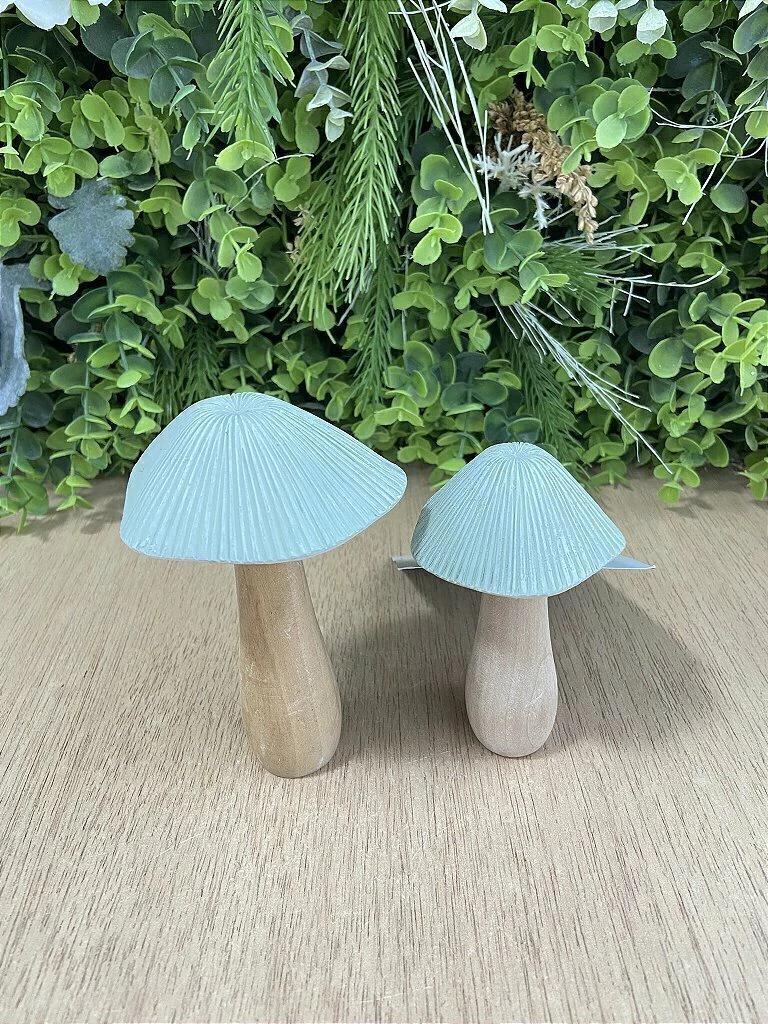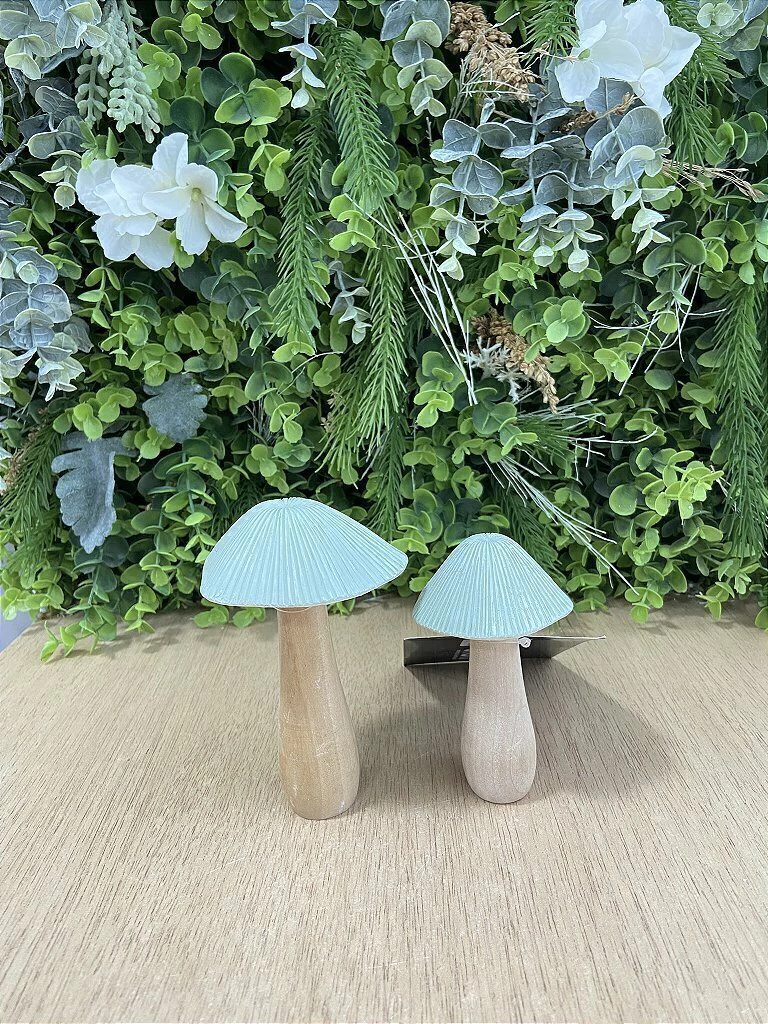 Cogumelos Decorativos c/2 - Verde Mint/Madeira 11/12cm