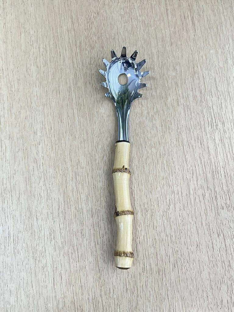 A Colher Para Massa Cabo Bambu é o utensílio ideal para servir suas massas favoritas com estilo e praticidade. Confeccionada com uma extremidade funcional projetada para agarrar e levantar massas longas como espaguete, linguine e talharim, e um cabo ergonômico feito em bambu natural, ela oferece um equilíbrio perfeito entre beleza e usabilidade. O bambu, além de ser um material renovável e sustentável, confere um toque rústico e elegante à peça. Adicione um toque de natureza à sua mesa e facilite o serviço de suas refeições com esta colher charmosa e eficiente.