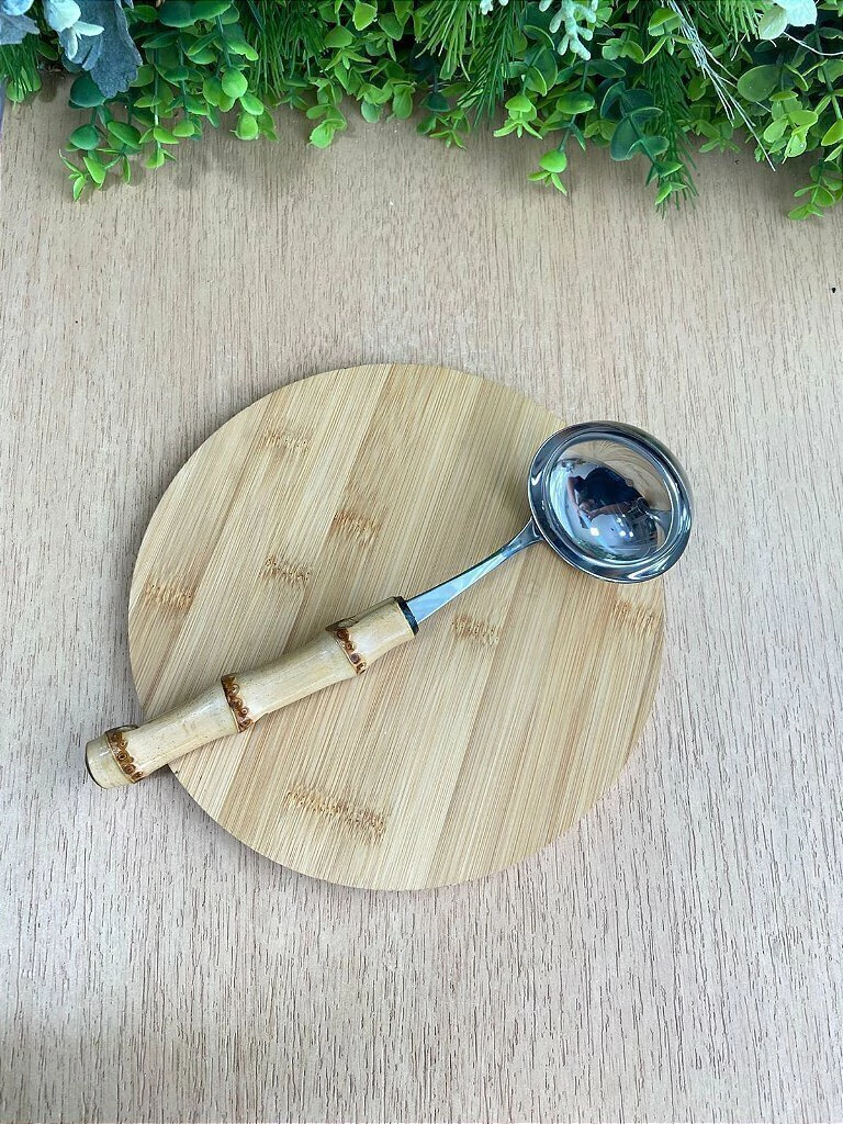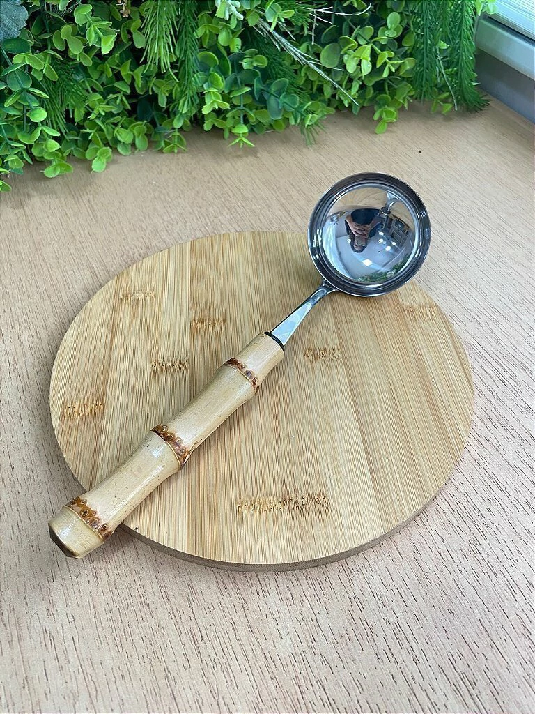 Seu design ergonômico garante um manuseio confortável e seguro, ideal para servir diversos alimentos, como molhos, sopas, feijão e muito mais. Além de ser leve e resistente, o bambu é naturalmente antibacteriano, o que contribui para uma cozinha mais higiênica.