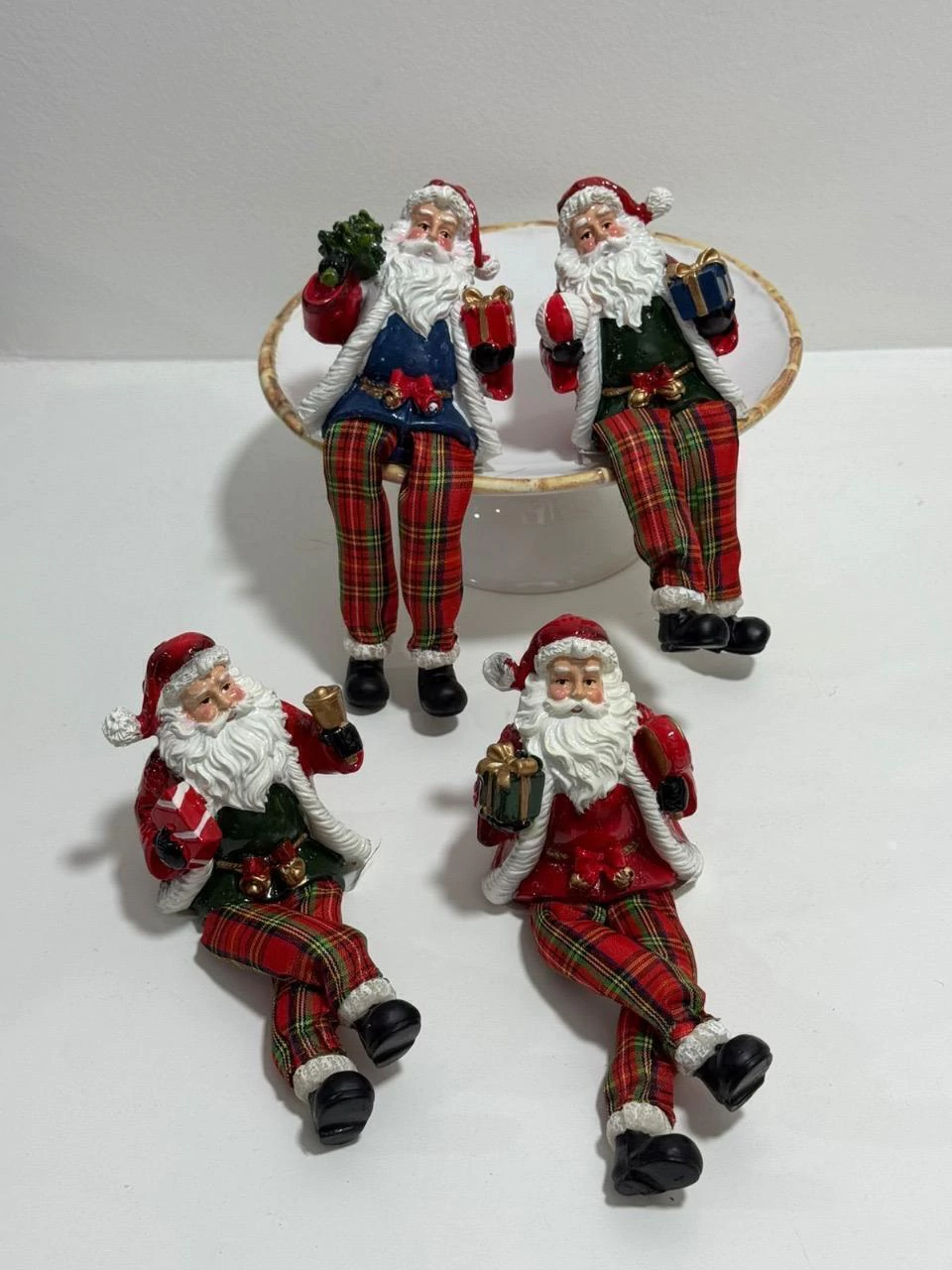 Roupa Estilosa Tartan: O Noel veste um traje com o clássico xadrez escocês (Tartan) em tons de vermelho, verde e branco. Cada boneco possui variações no vestuário (colete, jaqueta) e nos acessórios (presentes, azevinho, pequenos sinos), garantindo que cada peça seja única.