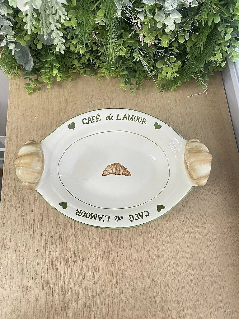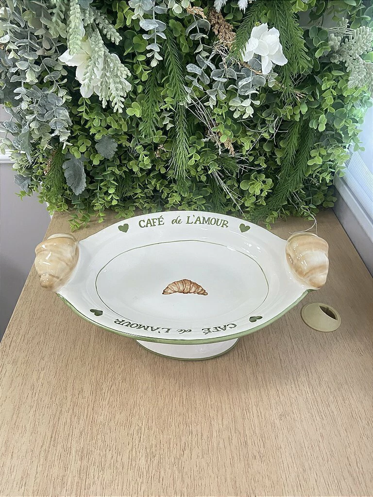 A Fruteira Oval com Pé Café De L´Amour, com seu design "croissant", é mais do que um simples recipiente para frutas; é uma peça de destaque que combina a funcionalidade essencial de uma fruteira com a estética refinada de um item decorativo. Inspirada nas curvas suaves e convidativas do famoso pão francês, esta fruteira traz um toque de charme e sofisticação para qualquer ambiente.