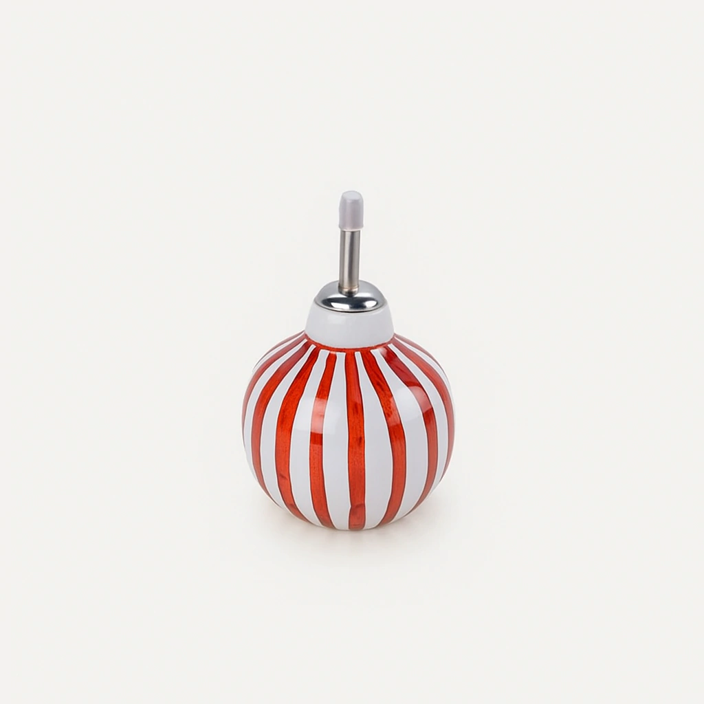 Estampa Clássica Italiana: O galheteiro possui um formato arredondado (bolinha) e é decorado com vibrantes listras Vermelhas e Brancas, um padrão clássico que adiciona alegria à sua mesa.