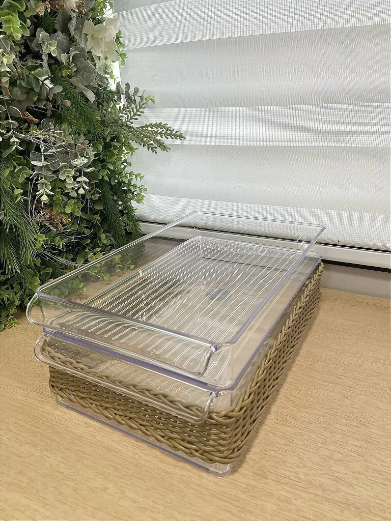 Seu design funcional permite fácil acesso ao gelo, mantendo-o isolado e pronto para refrescar seus drinks. Seja para um encontro casual entre amigos ou uma celebração especial, esta gaveta para gelo em vime é a combinação perfeita de praticidade e estilo, complementando qualquer ambiente com seu visual acolhedor e convidativo.
