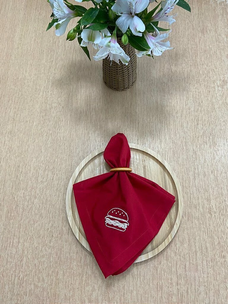 Adicione um toque divertido e elegante à sua mesa com o Guardanapo Bordado Hambúrguer da GlinDecor. Com um bordado criativo e encantador que faz referência ao clássico hambúrguer, este guardanapo traz um toque descontraído, sem perder a sofisticação. Perfeito para ocasiões informais, ele combina com estilo e bom gosto, tornando sua refeição mais prazerosa e única.