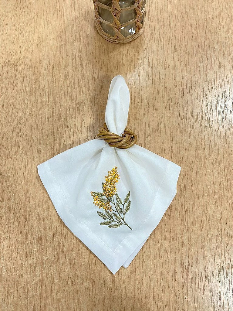 Adicione um toque de elegância e alegria à sua mesa com o nosso Guardanapo Bordado Mimosa Amarelo. Confeccionado em tecido de alta qualidade, este guardanapo apresenta um delicado bordado de flores de mimosa em tons vibrantes de amarelo, que evocam a beleza da primavera e a energia do sol.