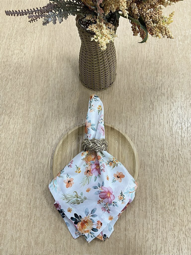 Com um delicado toque da estação, o guardanapo estampado "Primavera" apresenta um fundo branco puro que realça a vivacidade de sua estampa. Flores e folhagens em tons suaves e alegres dançam sobre o tecido, evocando a frescura e o renascimento da primavera. Este guardanapo é perfeito para adicionar um toque de leveza e elegância à sua mesa, seja para um almoço casual ou uma celebração especial. Seu design encantador complementa diversos estilos de decoração, trazendo a beleza da natureza para seus momentos à mesa.