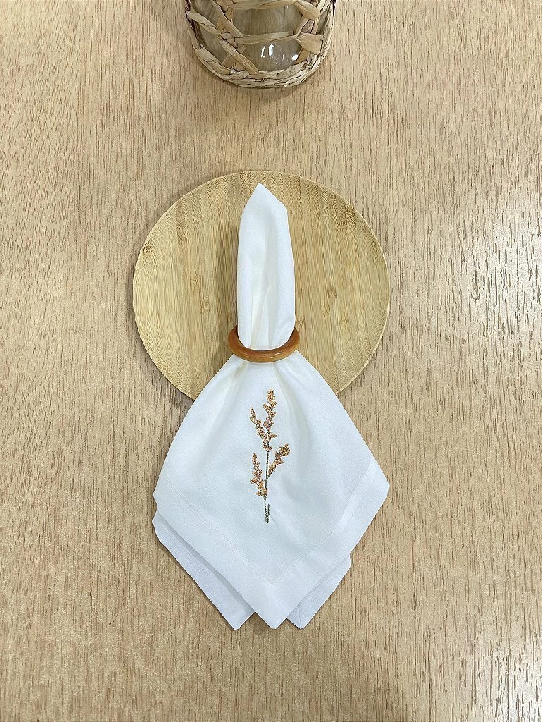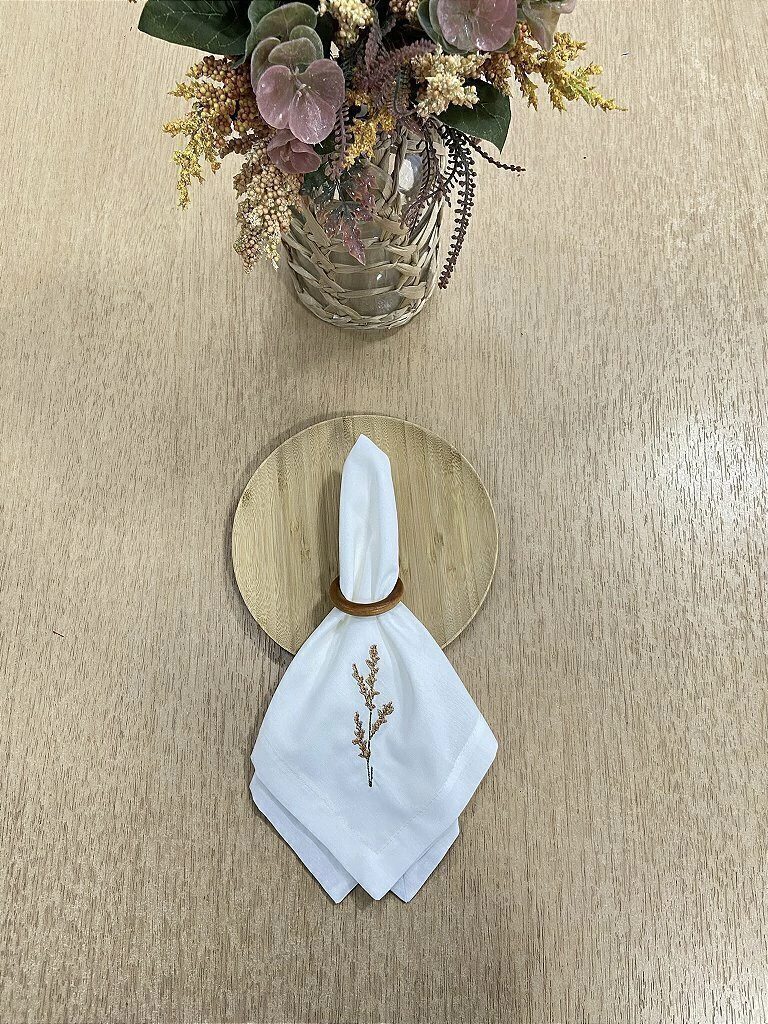 Com um toque rústico e elegante, o guardanapo "Flor Seca Bordado" traz a beleza da natureza para a sua mesa. Confeccionado em tecido de alta qualidade, apresenta um delicado bordado de folhas secas em tons terrosos, adicionando um charme artesanal e acolhedor à sua decoração. Perfeito para ocasiões especiais ou para elevar o seu dia a dia com um toque de sofisticação natural.