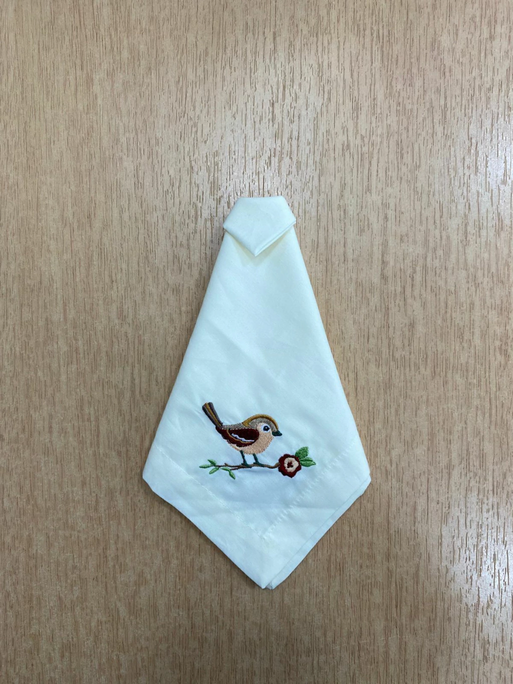Este guardanapo em tecido claro, com um encantador bordado de um pássaro e uma delicada flor, traz a beleza da natureza para a sua mesa. O design minimalista e o bordado artesanal criam uma peça única e sofisticada, ideal para quem busca adicionar um toque de personalidade e elegância em qualquer refeição.