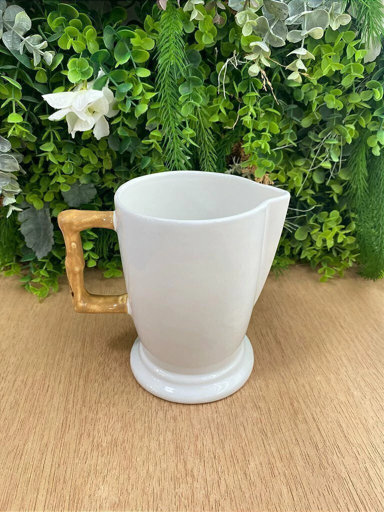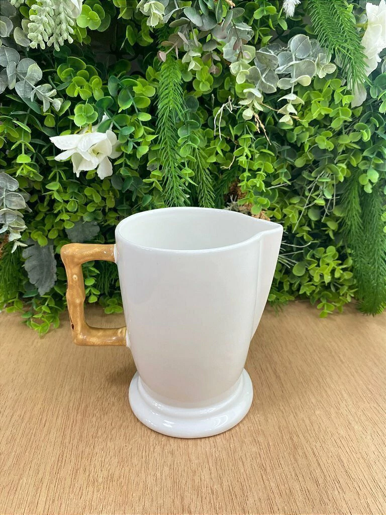 O corpo da jarra, em cerâmica de alta qualidade, oferece uma superfície lisa e um toque clássico, ideal para realçar a cor de suas bebidas favoritas. O grande diferencial reside em sua alça, meticulosamente desenhada para replicar a textura e os nós autênticos do bambu, proporcionando não apenas um visual orgânico encantador, mas também um agarre confortável e seguro.