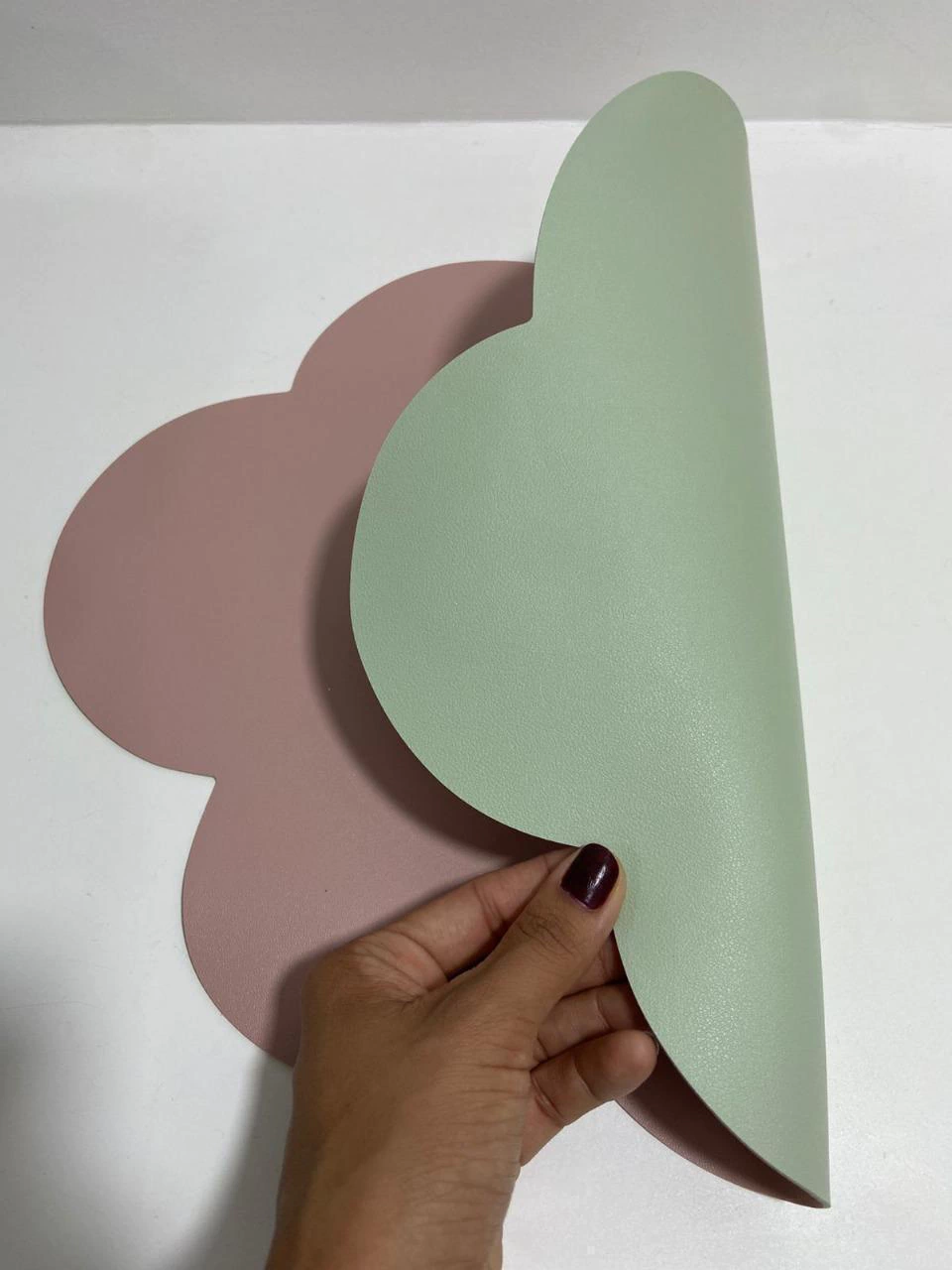 Dupla Face (2 em 1): O grande destaque é a sua funcionalidade reversível. A peça oferece duas cores em um único produto: um lado em um suave Rosa Envelhecido/Malva e o outro em um calmo Verde Menta/Sálvia. Isso permite alternar a decoração da mesa facilmente, combinando com diferentes louças e temas.