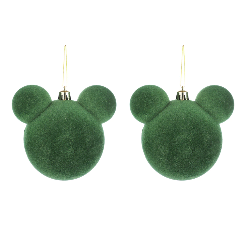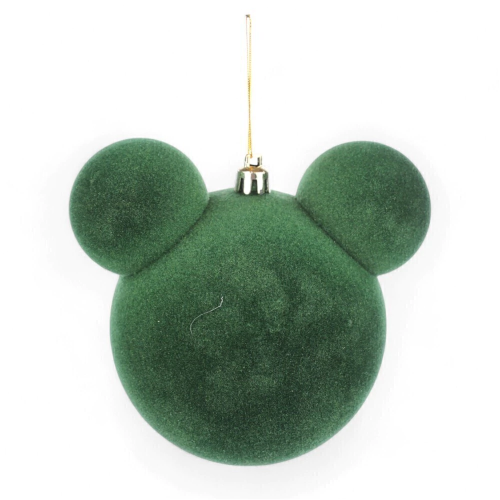 Formato: Os ornamentos são criados na inconfundível silhueta da cabeça do Mickey Mouse (uma esfera maior e duas "orelhas" menores), proporcionando um toque temático e divertido com elegância.