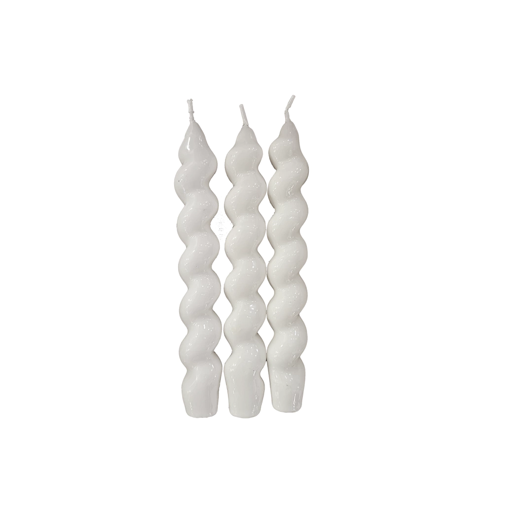 Design Contemporâneo (Twist): O maior diferencial destas velas é o seu formato. Elas apresentam um design torcido (ou espiral), que cria um efeito visual de movimento e volume. Este estilo, conhecido como twist ou bubble, é extremamente atual e se encaixa perfeitamente em decorações modernas, minimalistas ou de estilo escandinavo.