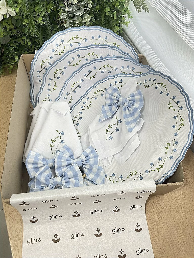 4 Guardanapos Bella Bordado Azul