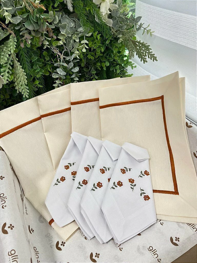 4 Guardanapo Flores Terracota