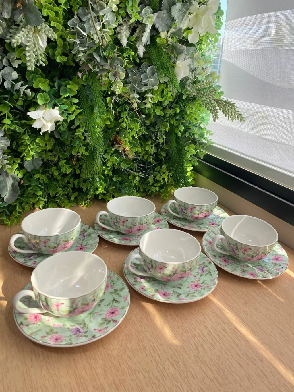 Kit Xícaras de Chá Jardim de Primavera Verde- 6 Unidades