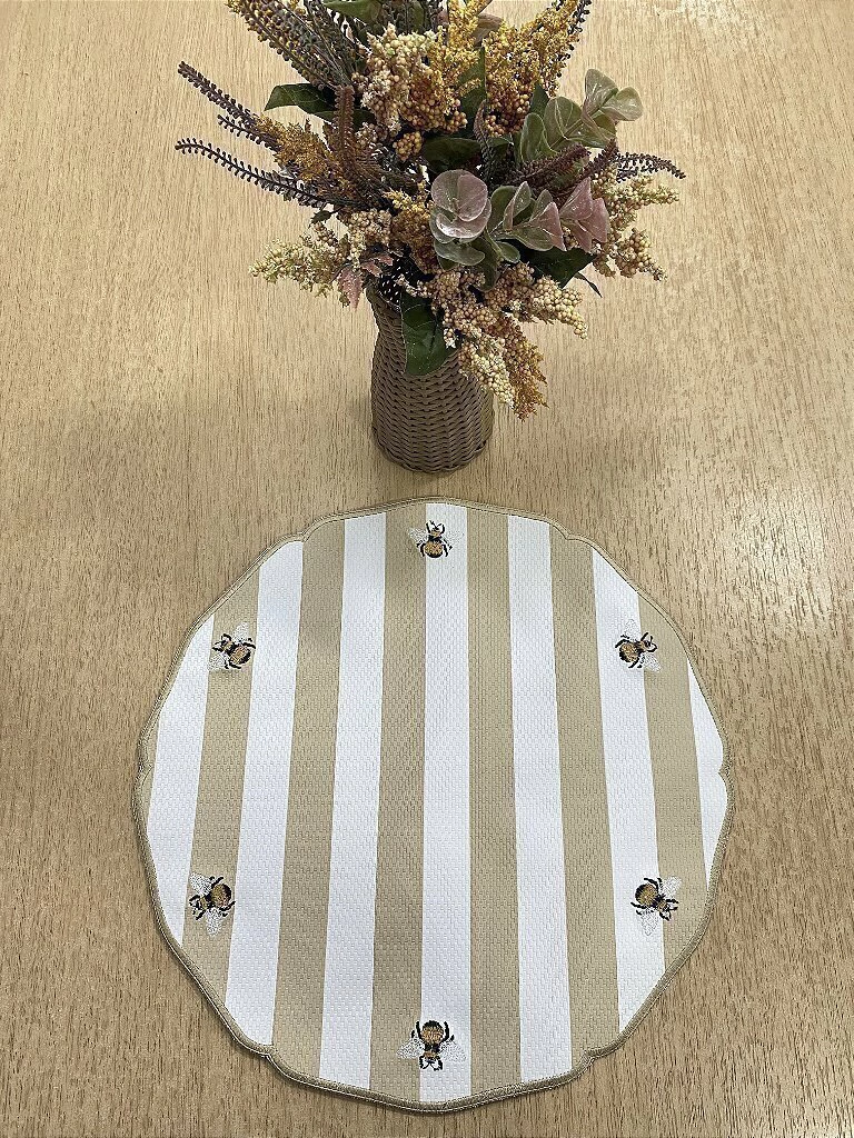 Transforme suas refeições em momentos ainda mais doces e encantadores com o Lugar Americano Abelhinhas Bege Listrado! Com um design que combina a delicadeza de pequenas abelhas com a elegância de listras em tons de bege, este lugar americano é perfeito para adicionar um toque de charme e alegria à sua mesa.