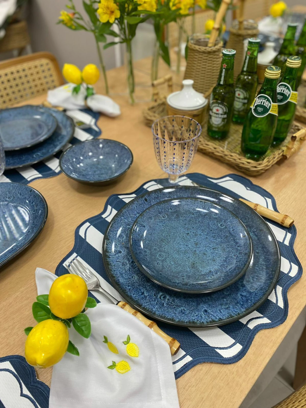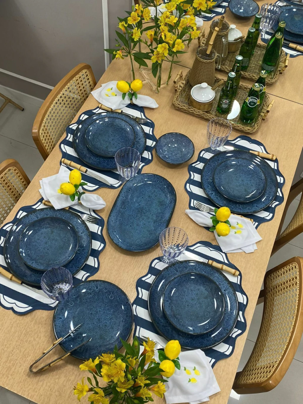 Transforme suas refeições com o Lugar Americano Listras Azuis Impermeável! Prático e elegante, ele protege sua mesa de derramamentos e manchas, graças ao seu material impermeável de fácil limpeza.