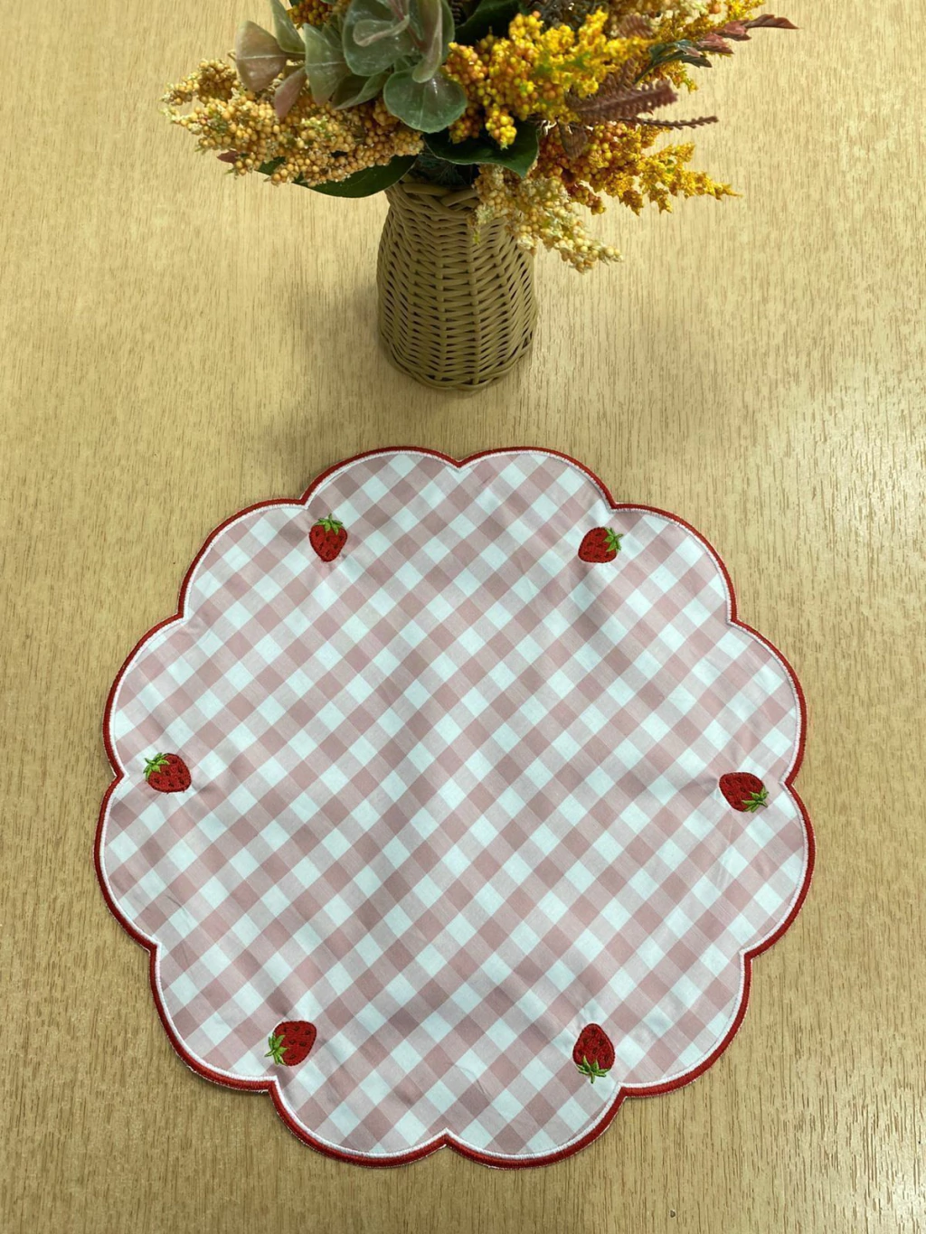 Delicado e encantador, o Lugar Americano Moranguinho Rosa Bordado é a escolha perfeita para uma mesa posta com clima de doçura e charme campestre. Com estampa xadrez em tom rosa claro, bordado de moranguinhos e acabamento em borda ondulada com viés vermelho, ele combina um visual romântico e alegre. Ideal para cafés da manhã especiais, brunchs ou piqueniques com estilo, essa peça transforma qualquer refeição em um momento acolhedor e cheio de personalidade.