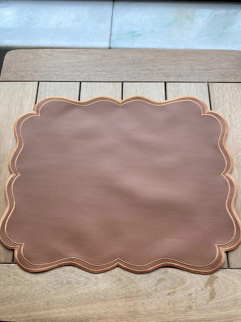 O formato da peça é essencialmente retangular, mas com um toque diferenciado: suas bordas são substituídas por um contorno ondulado e fluido que remete a uma nuvem estilizada ou a um babado suave. Este design confere leveza e um charme orgânico ao mise en place.
