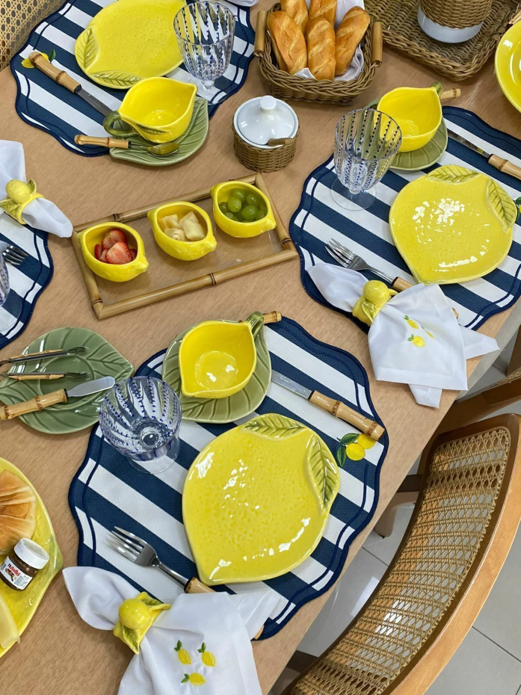 O "Lugar Americano Sabor de Limão" é uma peça de mesa que une a elegância clássica com um toque de frescor e alegria. Confeccionado em courino, ele oferece durabilidade, praticidade e uma superfície fácil de limpar, ideal para o uso diário e para ocasiões especiais.