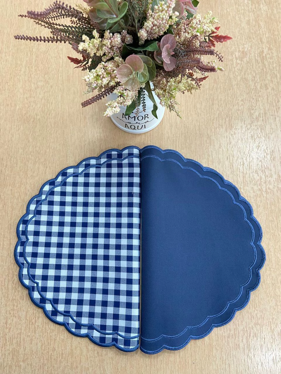 Sua funcionalidade dupla-face permite criar dois visuais distintos para a sua mesa. De um lado, a peça apresenta um tom de azul marinho liso, elegante e sóbrio, perfeito para composições mais formais, minimalistas ou com um toque náutico. Ao virá-lo, o clássico padrão xadrez gingham em azul marinho e branco confere um ar alegre e acolhedor, ideal para refeições descontraídas em família ou entre amigos.