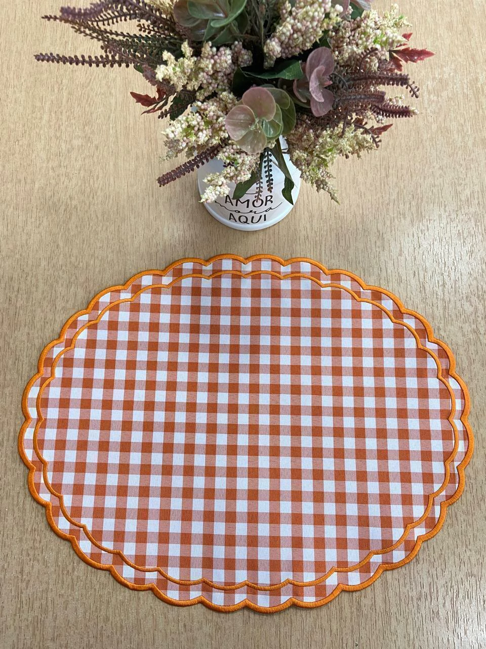 O "Lugar Americano Xadrez Duplo Laranja" é uma peça vibrante e versátil, perfeita para trazer alegria e um toque de cor quente à sua mesa.