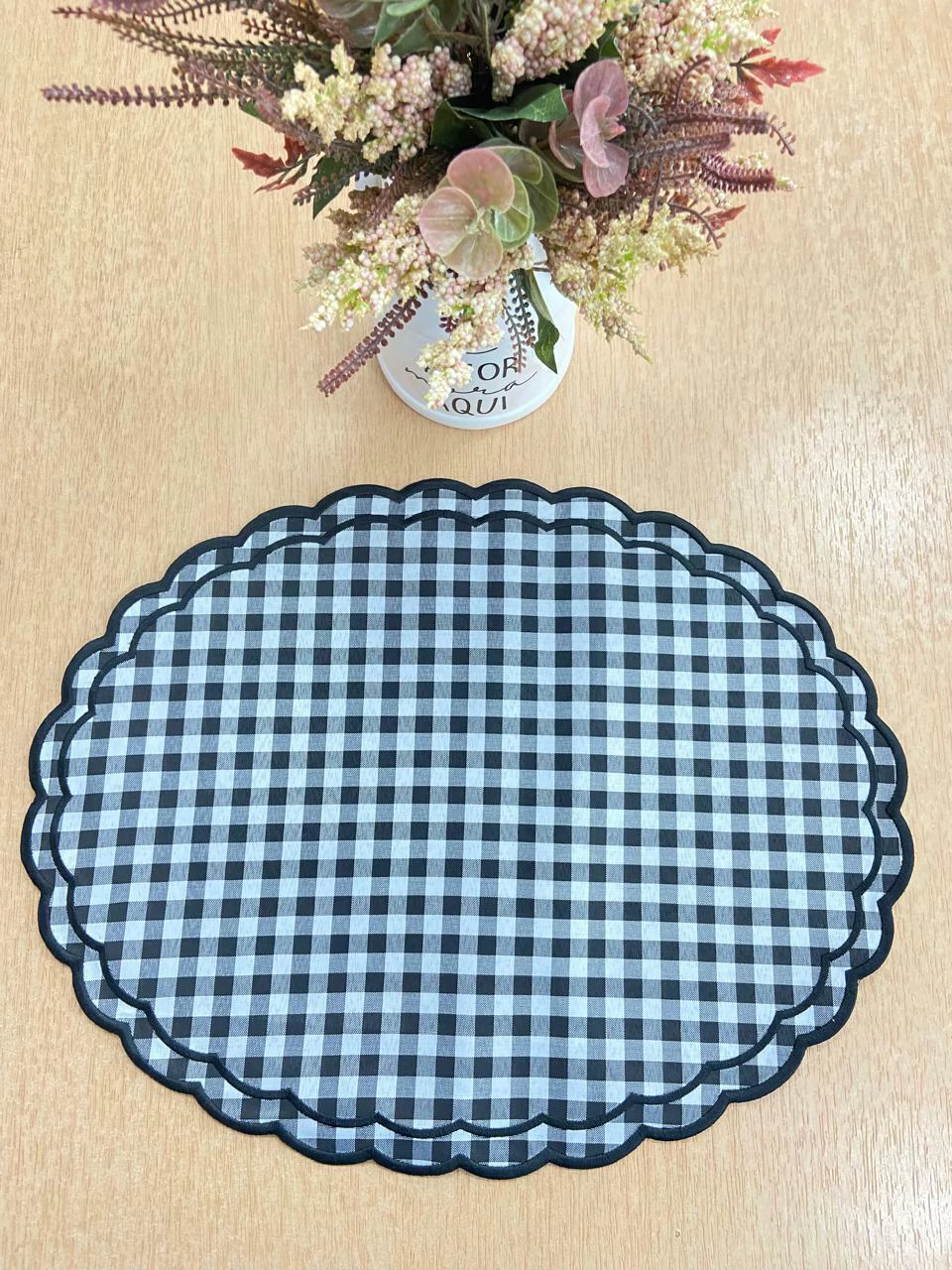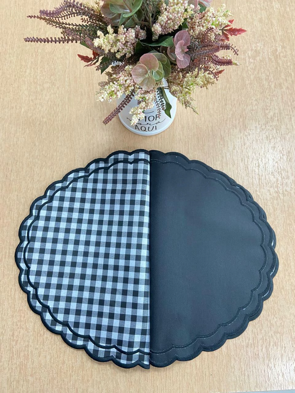 Com seu design dupla-face, ele proporciona a praticidade de dois visuais em um único produto. De um lado, a peça apresenta um preto liso e clássico, perfeito para criar uma base minimalista e moderna, ideal para realçar a cor de louças e outros acessórios. Ao virá-lo, a icônica estampa xadrez gingham em preto e branco confere um ar charmoso e acolhedor, ideal para uma decoração monocromática ou para adicionar um toque retrô à sua mesa.