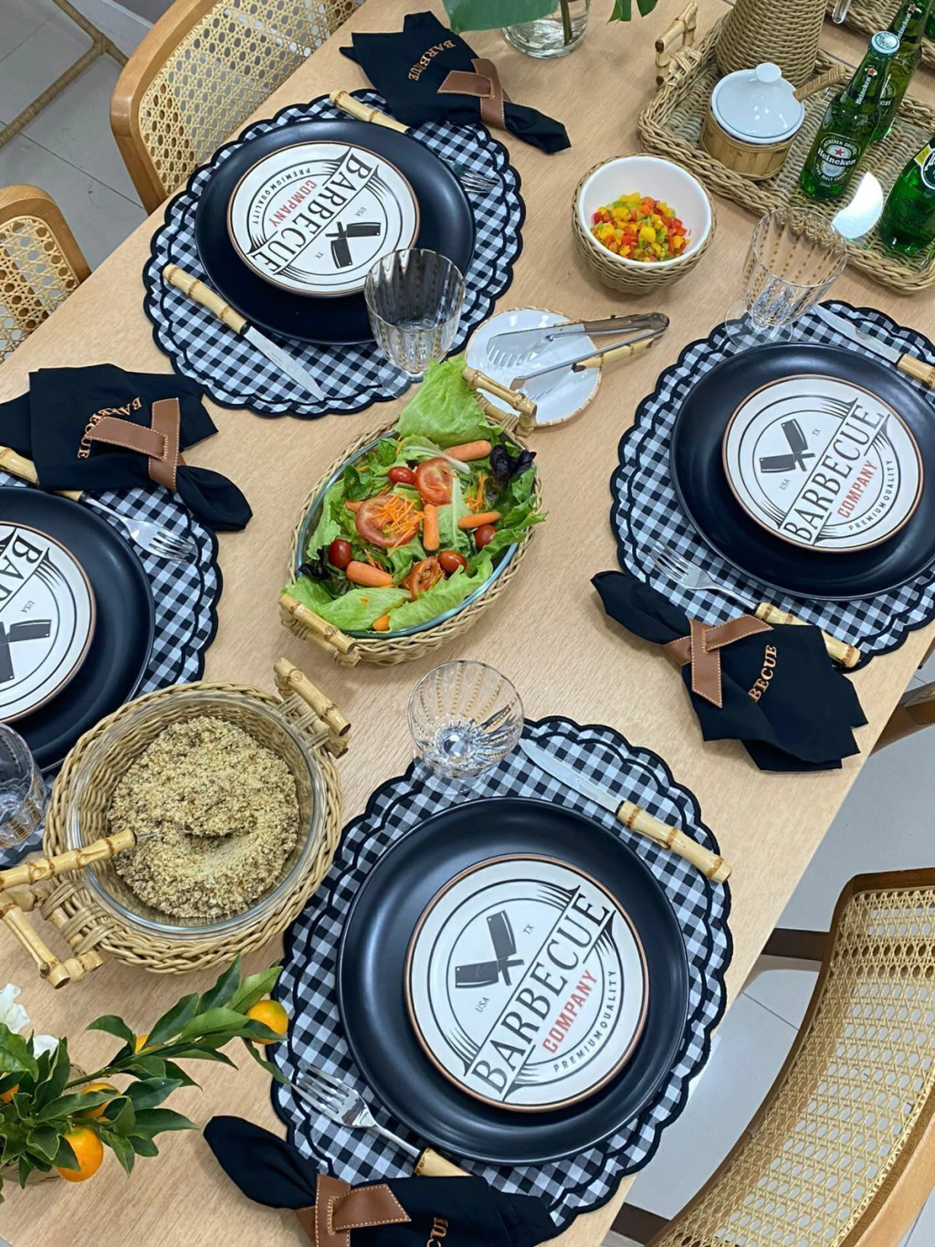 O "Lugar Americano Xadrez Duplo Preto" é uma peça que oferece sofisticação e versatilidade, ideal para compor mesas com um toque de elegância atemporal.