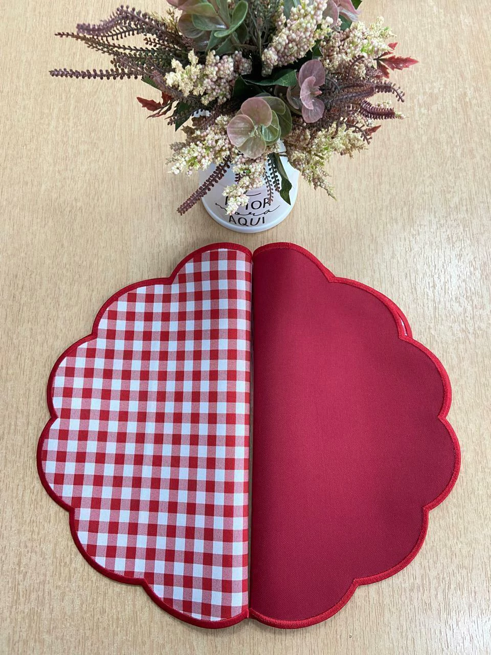 Com seu design dupla-face, ele proporciona a praticidade de dois visuais em um único produto. De um lado, a peça apresenta um tom de vermelho liso, intenso e elegante, perfeito para criar uma base dramática e sofisticada para louças de cores neutras. Ao virá-lo, a icônica estampa xadrez gingham em vermelho e branco confere um ar alegre e acolhedor, ideal para refeições em família ou para um clima de piquenique.