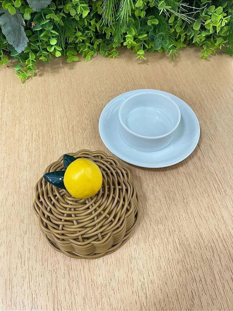 A Manteigueira Citrus Limon é feita em porcelana com acabamento em vime trançado e delicada ilustração de limão siciliano, trazendo leveza e elegância à sua mesa. Ideal para servir manteiga, geleias ou pastinhas com estilo, ela combina funcionalidade e beleza em cada detalhe. Perfeita para cafés da manhã especiais, brunches ou mesas ao ar livre, essa peça transforma momentos simples em experiências encantadoras.